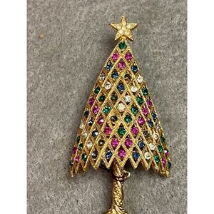 This vintage Corocraft brooch set includes a beautiful Christmas tree and lantern design in a gold tone finish. The brooches are handmade and signed, adding to their unique charm. The multicolor accents make them perfect for the holiday season, but they can also be worn year-round. Measuring 2 1/2 inches for the Christmas tree and 2 1/4 inches for the lantern, these brooches are a great addition to any collection. Their shape and type make them ideal for dressing up any outfit, and their vintage status adds to their value. Perfect for any fashion jewelry enthusiast, these brooches are sure to impress.