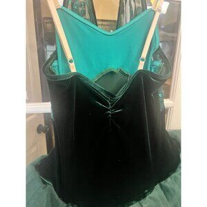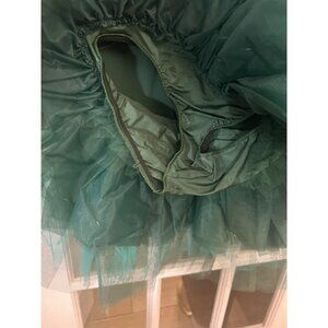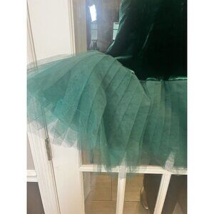 The product is a vintage costume dress for girls by Curtain Call, featuring a tutu style in a green color. It is designed for a size M and has a theme of a fairy tale. The dress is original and includes personalisation options, making it ideal for theatre or play performances where a whimsical and elegant look is desired. Perfect for young ballerinas or fairies looking to add a touch of magic to their costumes.