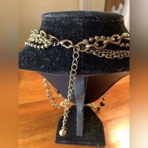 VINTAGE COSTUME FASHION GOLD TONE THREE STRAND ACRYLIC BEADED NECKLACE. 26”