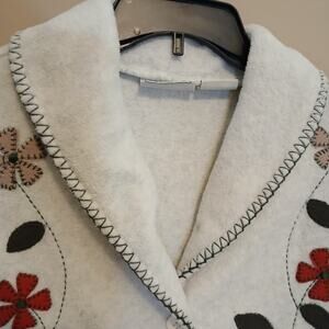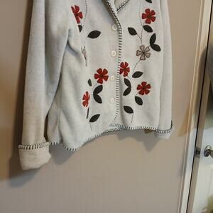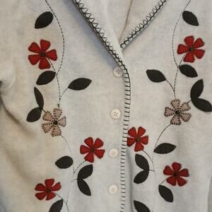 VINTAGE COTTAGECORE BASIC EDITIONS/ TAN FLORAL EMBROIDERED /FLEECE COAT BUTTONUP