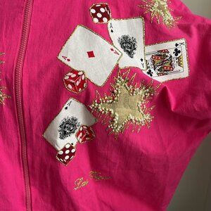 VINTAGE COTTON LAS VEGAS BOMBER JACKET WITH PLAYING CARDS FABULOUS APPLIQUÉS