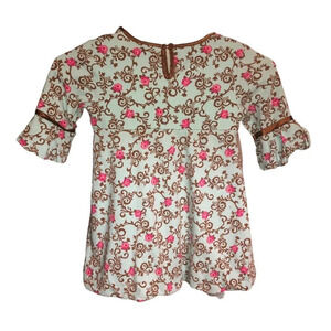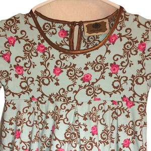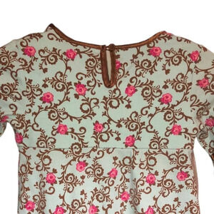 VINTAGE COUTURE Sz 4 Girls Toddlers Floral Lt. Blue & Brown Flannel Dress