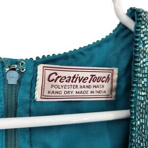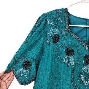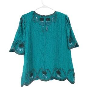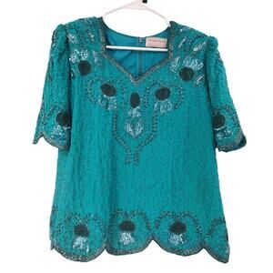 VINTAGE CREATIVE TOUCH FULLY BEADED SCALLOP HEM FLAPPER SHORT SLEEVE BLOUSE