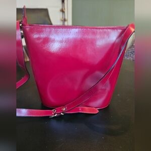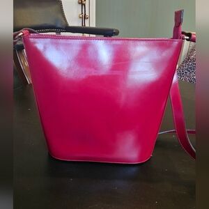 VINTAGE CRISTIAN Italian Cherry Red Genuine Leather shoulder bag.