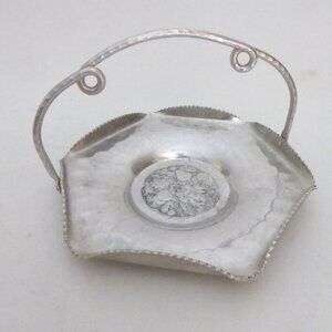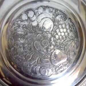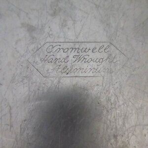 Pre-owned, vintage, Cromwell brand, hand wrought aluminum dish / basket and “Silent Butler” matching set. The fruit and flower pattern appear on both items. The handle on the dish can be lowered. The lid on the butler can be lifted with your thumb using the attached lever. (See photos for details) I am the original owner. It has been in climate controlled storage for decades. Comes from a pet and smoke free home.