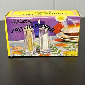 VINTAGE CRYSTALLINE SALT-N-PEPPER SHAKERS SET WITH ORIGINAL BOX HONG KONG RETRO