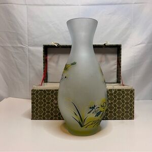 VINTAGE CUNJING Chinese Art Glass, Yellow Vase with Certificate, approx 9 1/2”