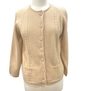 VINTAGE Cable Knit Tan Cardigan SZ S
