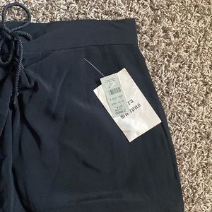 Black High Waisted Skirt with gold buttons and tie closure on back.