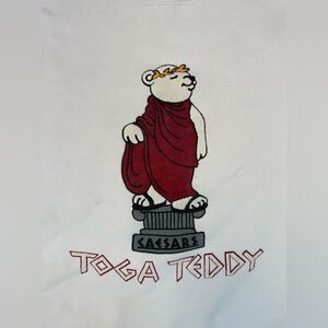 VINTAGE Caesars Toga Teddy Graphic Sweatshirt Women Small White 80s 90s