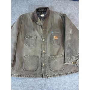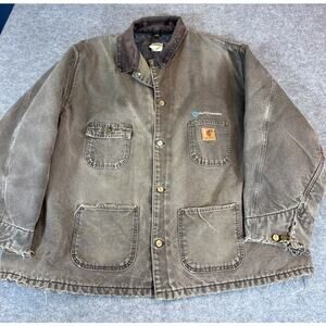 VINTAGE Carhartt Chore Jacket Mens 2XL Brown Duck Canvas Blanket Lined Coat Work