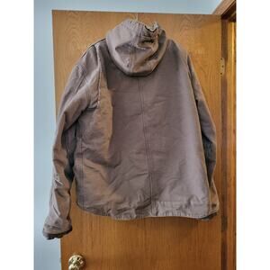 VINTAGE Carhartt Size Large Heavy Canvas Hooded Fleece Lined Brown Jacket GUC