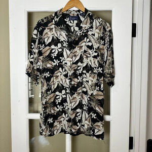 Authentic vintage aloha hawaii hawaiian floral beach vacation hula luau boat boating summer bbq collector collectible pineapple bamboo fern tropical tropicals surf surfing surfboard tropical hibiscus palm tree coconut button down button up caribbean palms