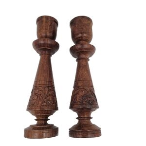 VINTAGE Carved wooden candle holders