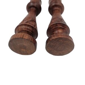 Beautiful set of woodnlen candle holders. Versatile enough to fit many decor.