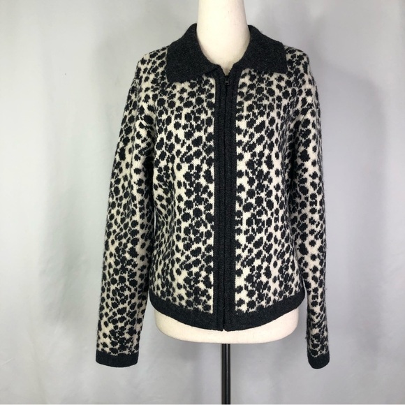 VINTAGE Casual Corner fair isle zip front cardigan wool grey ivory M