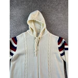 VINTAGE Catalina Hoodie Mens Medium Ivovy Beige Hooded Full Zip Knit FLAW