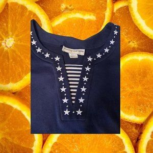 Vintage Cathy Daniels Faux V Neck Blue With Design