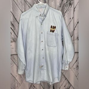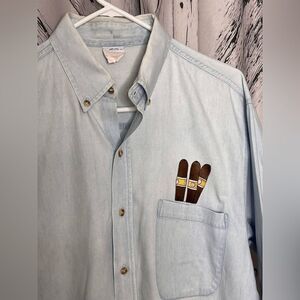 VINTAGE Chambray Shirt w/ embroidered cigars in the pocket M