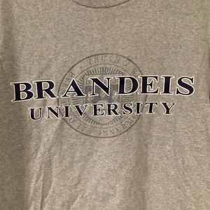 Gently Used Vintage Champion Brandeis University T-Shirt. Size: Medium Color: Gray Shirt with Navy Blue/White/and Dark Gray Print. Stitched Champion Logo on the Sleeve. In Excellent Condition!!!