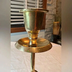 VTG taper candlestick holder. The candlestick holder has a cherub playing a horn. Solid brass construction, heavy. Vintage Christmas or Holiday decor, circa, ‘70’s. Made in India. Very good, used condition.