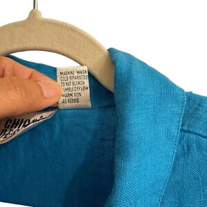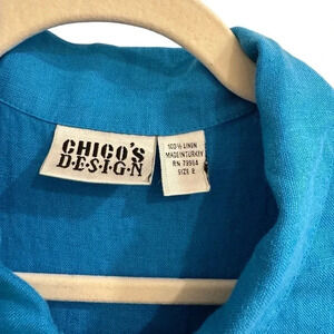 VINTAGE Chico’s 100% Linen Button Up Dress Size M (2) Blue Coastal Nautical Work
