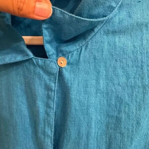 Chico’s 100% Linen Button Up Summer Dress Size M (2) Blue Coastal Nautical Work
