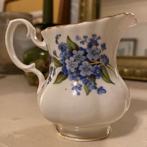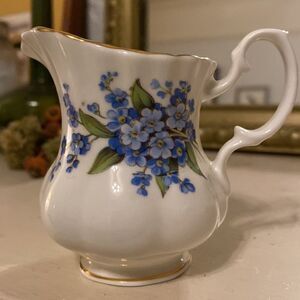 🎀 VINTAGE 🎀 China Creamer Blue Floral Gold Trim