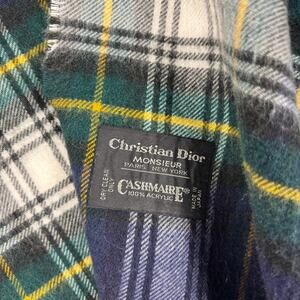 VINTAGE Christian Dior Monsieur Plaid Scarf 100% Acrylic Cashmaire Japan 55"