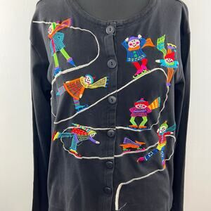 VINTAGE Christina Rotelli Black Cotton Embroidered Ice Skating Button Down Top