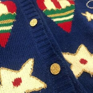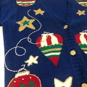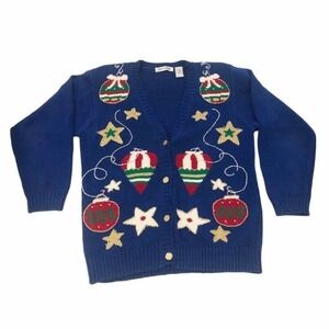 VINTAGE Christmas Ornament Button Up Cardigan Ugly Sweater Medium