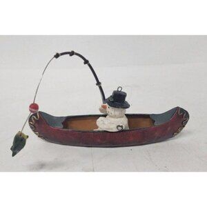 Vintage Christmas Tree Ornament Fishing Snowman In Metal Boat Fisherman Decor 6"