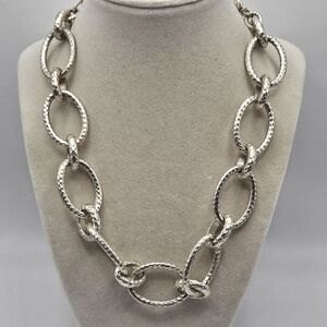VINTAGE Chunky Premier Designs Silver Tone Large Textured Link Chain Necklace