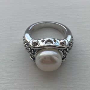 VINTAGE Chunky Silver Ring with pearl. Beautiful and unique design with lots of character. The ring measures closer to 7.5 (see last photo).