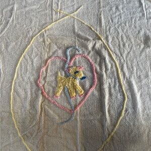 VINTAGE - Circa: 1962 Chenille Tufted Prod. Union Label, Babycore, Quiet Lux. 40x54”, 100% Cotton, RN17668. New OLD STOCK. This was mine and never used. My mother received this as a baby shower gift.