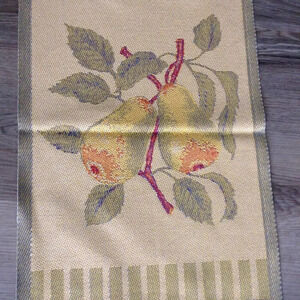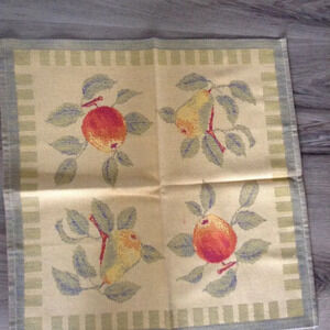 VINTAGE Circa: 1980's; Set of 4 napkins, placemats, 1 runner. Made in Italy, OLD WORLD, Woven, Pears and Peaches. Placemat: 21.5x14.5", Runner: 14.5x32", Napkins: 8x8". No signs of wear; gently pre-loved; used 2 times. Formal Dining, Tradition decor.