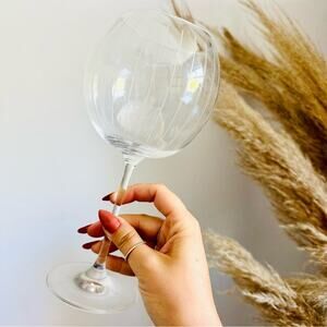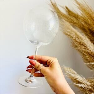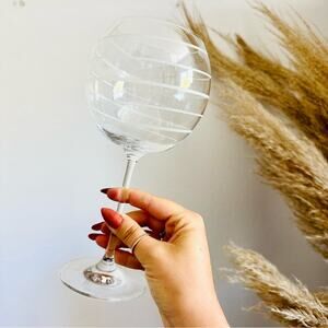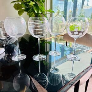 VINTAGE Clear White Polka Dot Striped Wine Glass Stem Drink Wear Glasses Set 4
