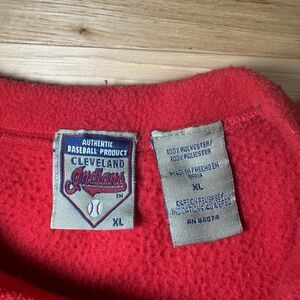 The Vintage Cleveland Indians Sweatshirt XL is an authentic MLB product from the 90s featuring the iconic Chief Wahoo design. This red sweater is perfect for female fans of the Cleveland Guardians, representing the Major League Baseball team in a classic style. Made in the United States, this XL sweatshirt is a must-have collectible for any baseball enthusiast looking to add a piece of sports history to their wardrobe.