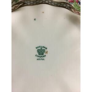 A uncovered, round,scalloped, and footed serving dish from Coalport china in the Indian Summer Pattern