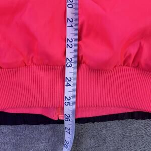 Liner: Zip-in reversible insulated liner (purple on one side, coral/pink on the other) with rib knit cuffs and hem