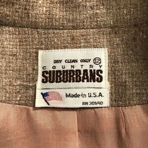 VINTAGE - COUNTRY SUBURBANS 100% Wool Tan Tweed One Button Blazer - Size 12. No visible flaws. Excellent pre-owned condition.