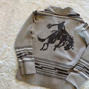 VINTAGE Cowichan Knit Western Bucking Bronc Rodeo Horse Cardigan