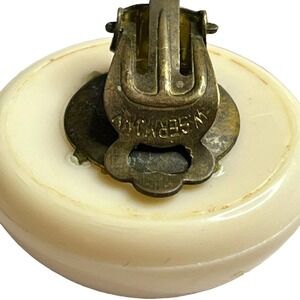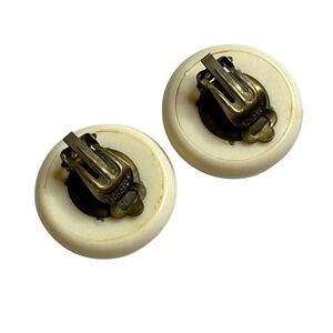 Vintage Cream Round Earrings Clip On Signed W. Germany Mid Century Brass Back