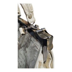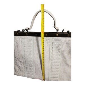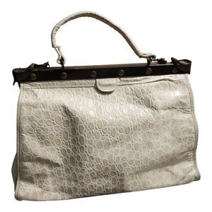Gorgeous vintage-inspired/retro doctor-style satchel in a beautiful light cream/beige with an all-over crocodile/alligator embossed texture.
