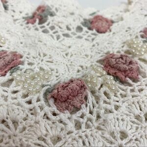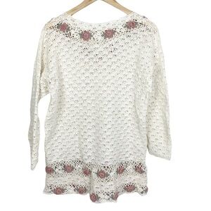 VINTAGE Crocheted Flower Embellished VNeck Sweater