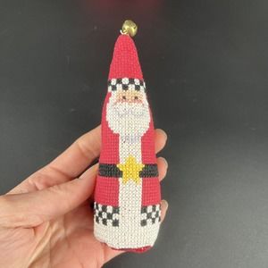 VINTAGE Cross Stitched Stuffed Plush Santa Claus Dolls Set 3 Christmas Decor