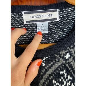 VINTAGE Crystal Kobe Black Cardigan Sweater Medium