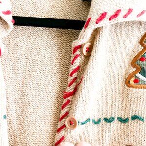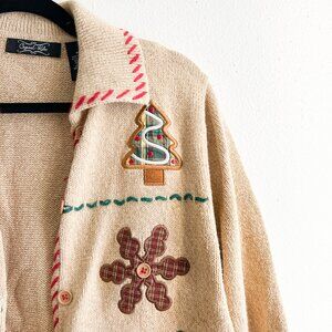 VINTAGE Crystal Kobe Ramie & Cotton Knit w/Christmas Cookie Appliqué Cardigan