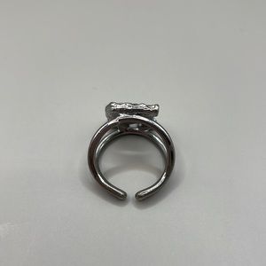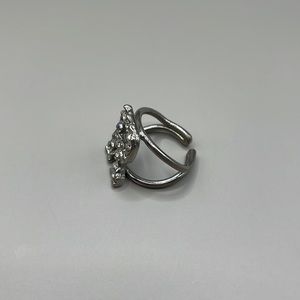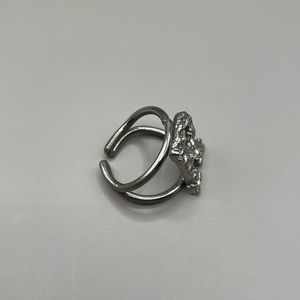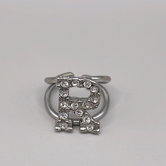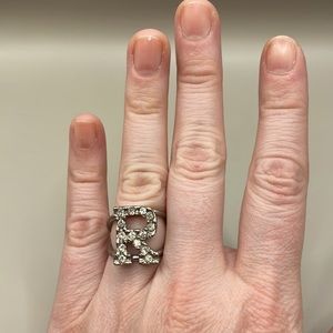 Vintage “R” ring Silver tone Rhinestone accents Size 5 Gently used