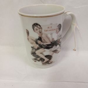 VINTAGE Cup Mug Norman Rockwell NO SWIMMING 8 OZ